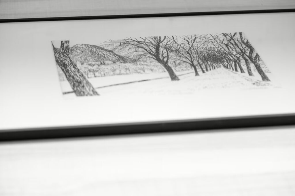 Druck der Radierung ‚Die Schillerallee‘ aus der Mappe ‚Ems‘ von Dr. Gottlieb Sutterlütti. Abgerundet wird der Kunstgenuss von einem feinen Pralinen Dreierlei der Confiserie Fenkart.